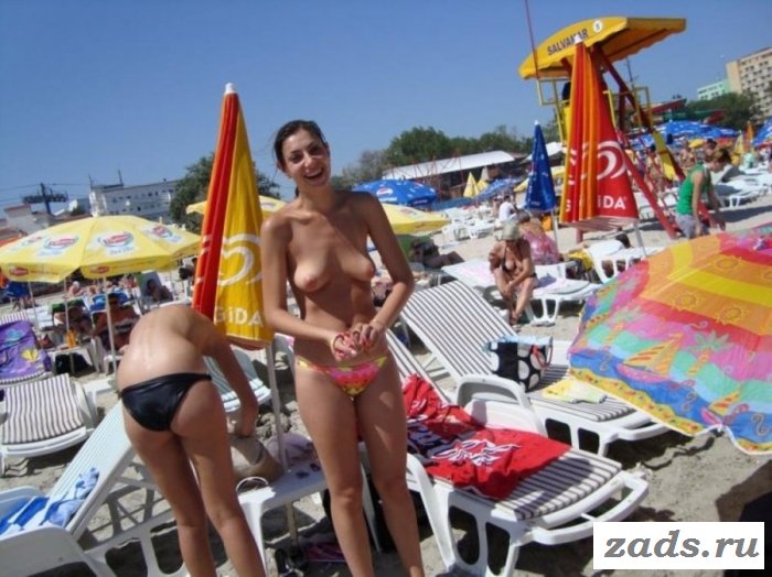 Телочки без лифчика украшают пляж