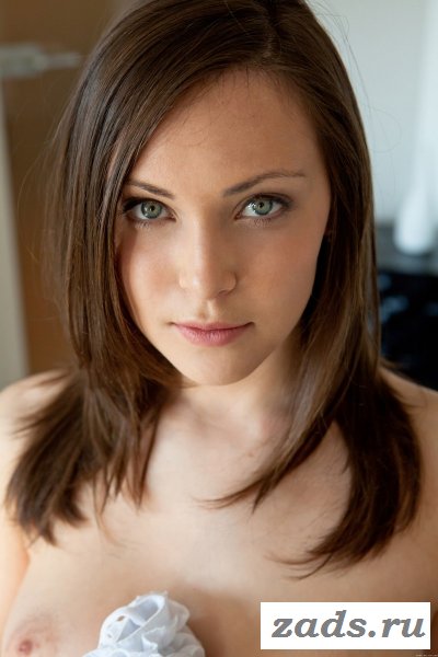 У себя в комнате присела на небольшой кожаный пуфик, серого цвета. Белокожая брюнетка в белоснежной шелковой блузке. Миленькое личико, красивые большие зеленые глаза. Расставила свои стройненькие ножки, а там все ухожено и аккуратно выбрито под ноль.