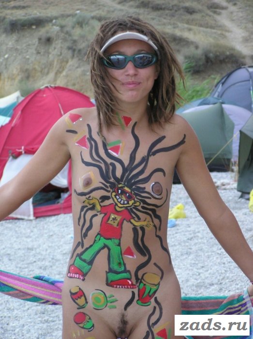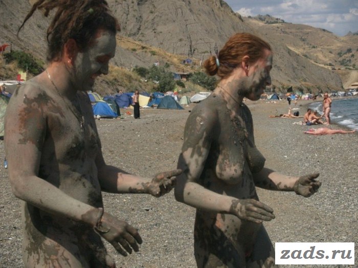 У нудистов свои законы и правила, и их мир по-своему прекрасен. Основное правило - ничего не стесняться, даже писек и сисек, а также поменьше глазеть на них как дикарь. Итак, добро пожаловать на пляж с голыми телками, где вы сможете встретить и мужчин обнаженных. Иногда эти людишки обмазывают тела грязью, что очень прикольно, а одна блондинка разрисовала титьки, киску, вообще всю фигуру короче и с радостью попозировала. Идем дальше и натыкаемся на несколько человек без одежды - загорелых веселых пофигистов.