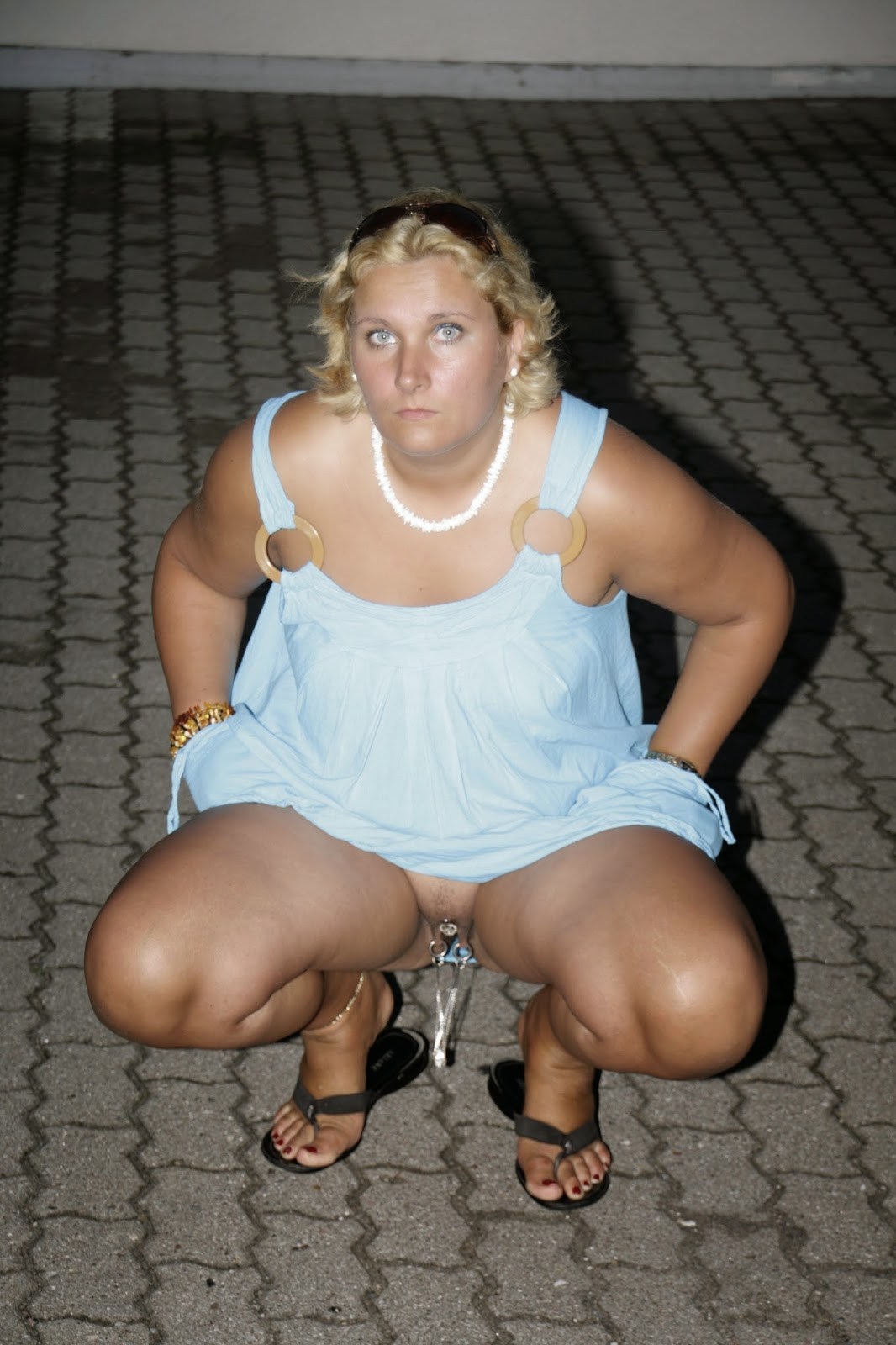 Взрослая в платье без трусов