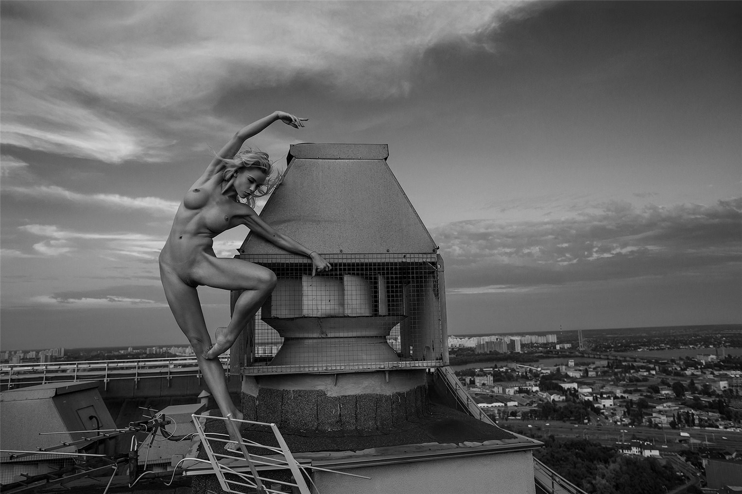 Голая фотосессия на крыше