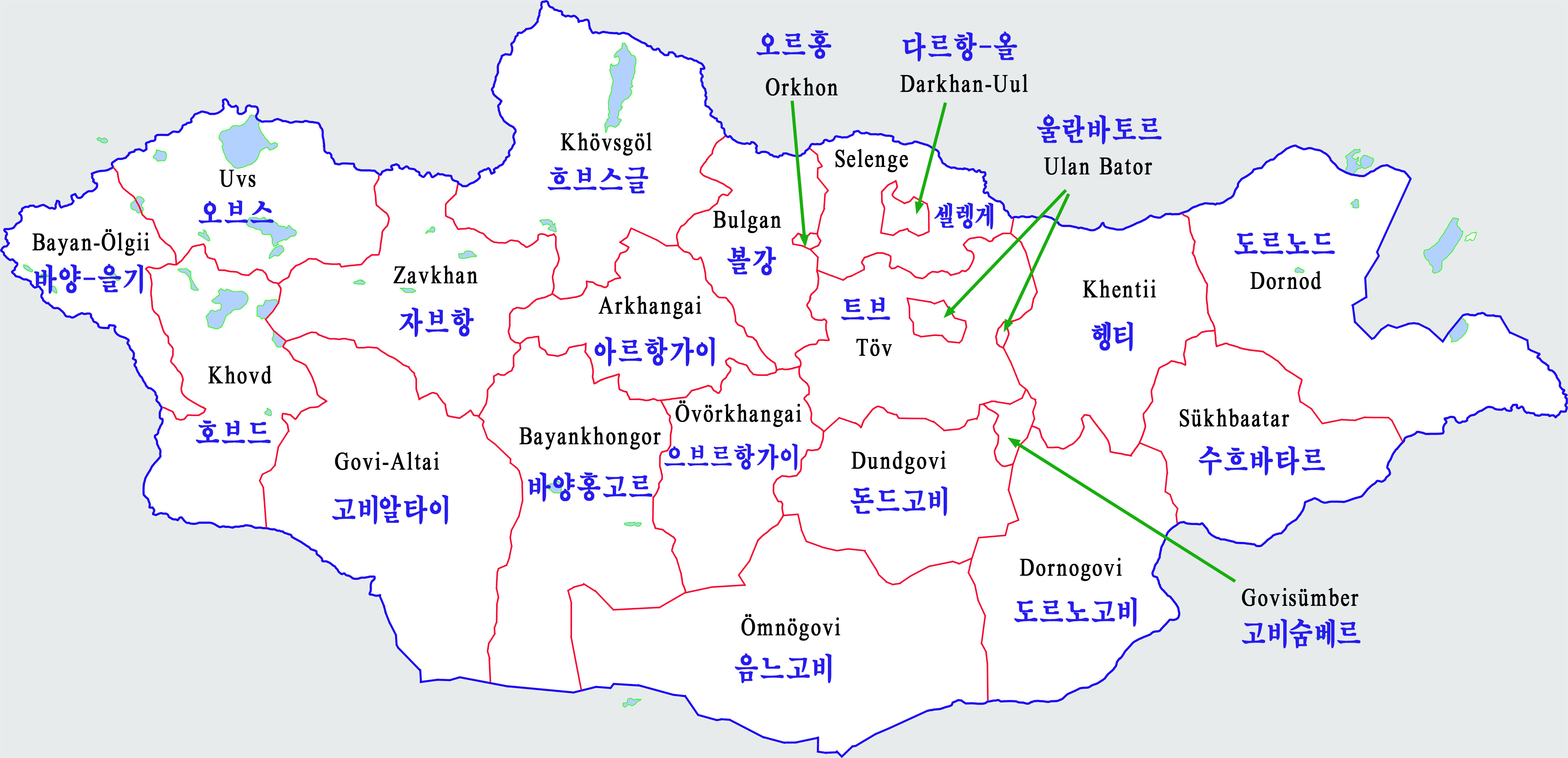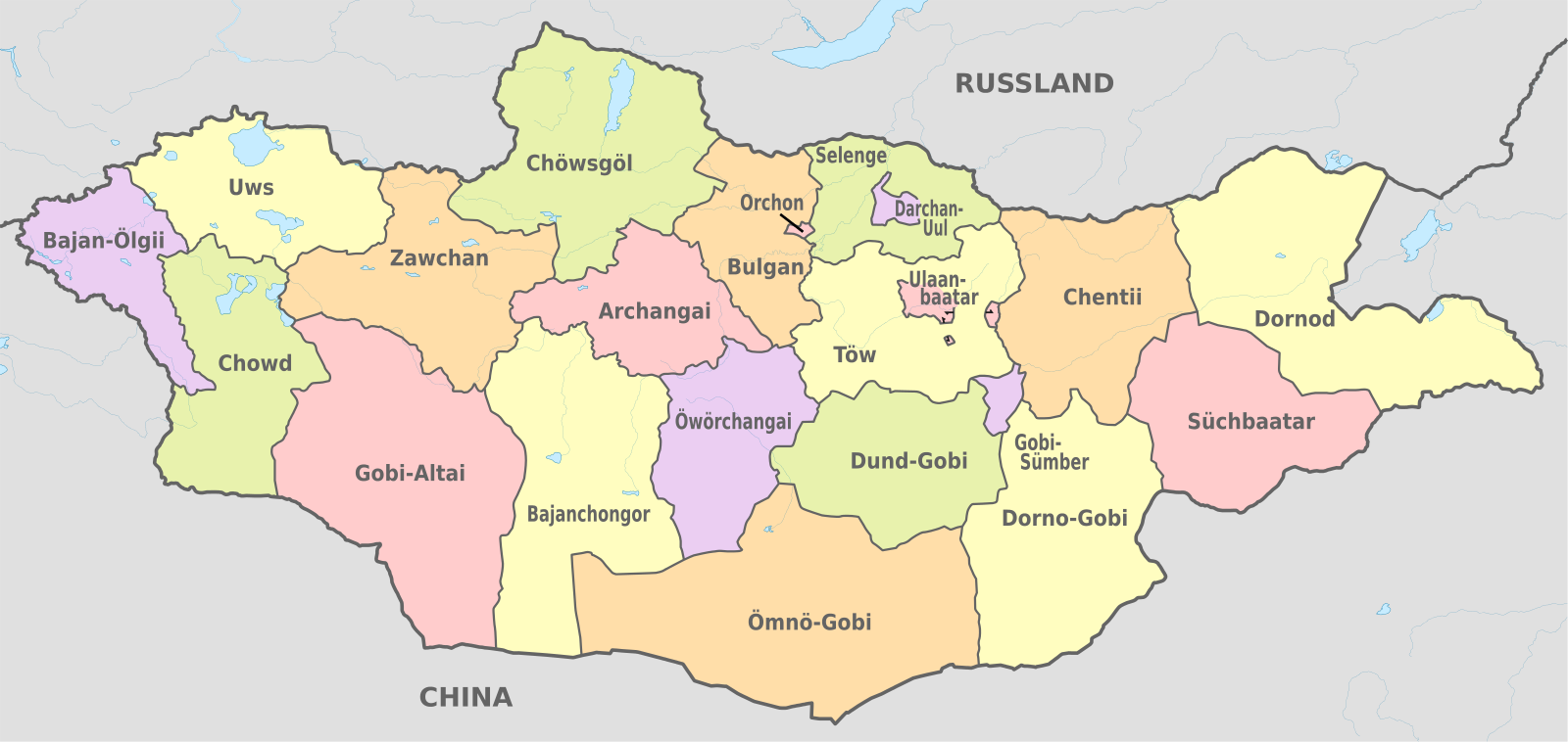 Провинции Монголии на карте