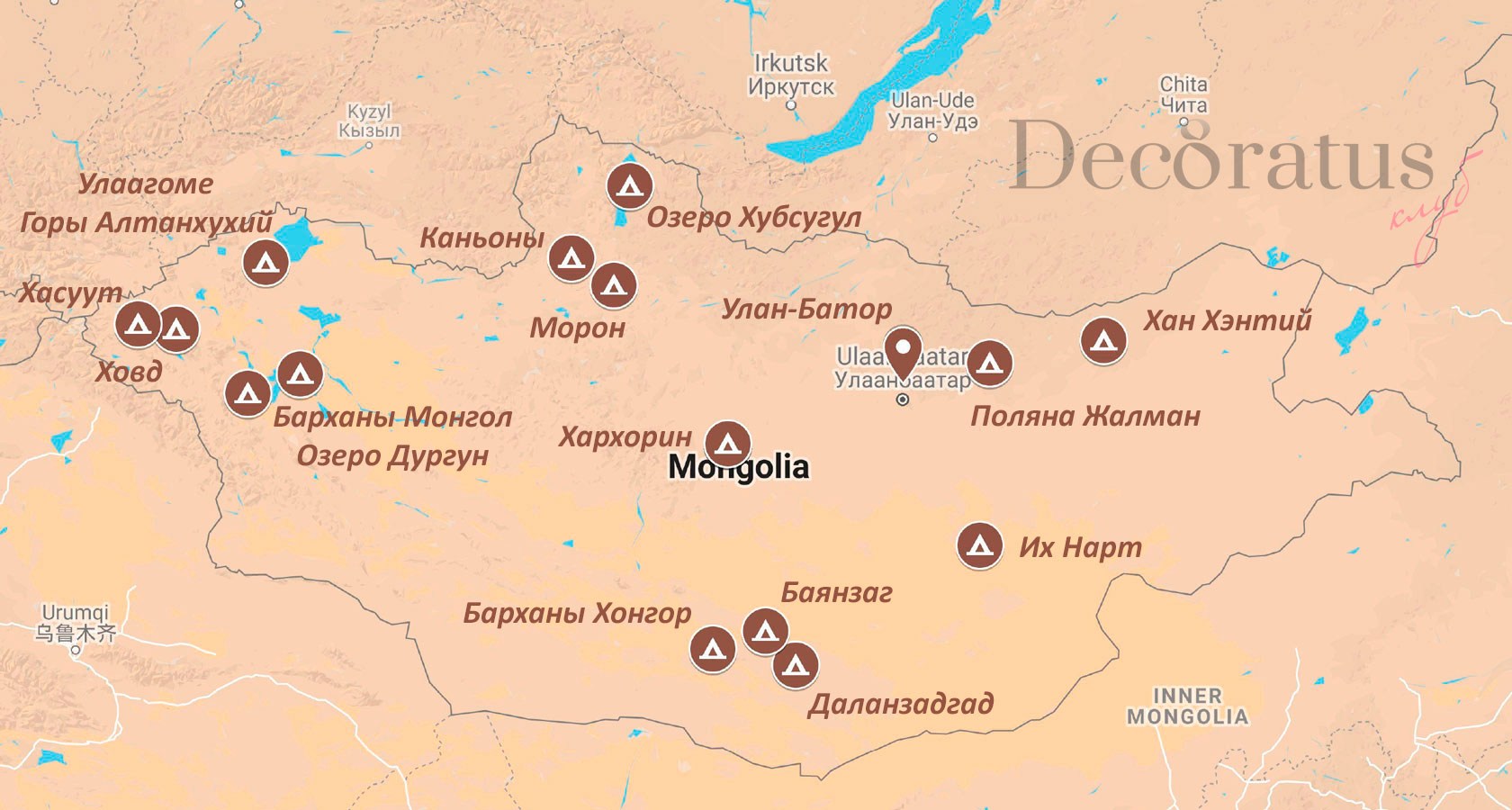 Границы Монголии на карте