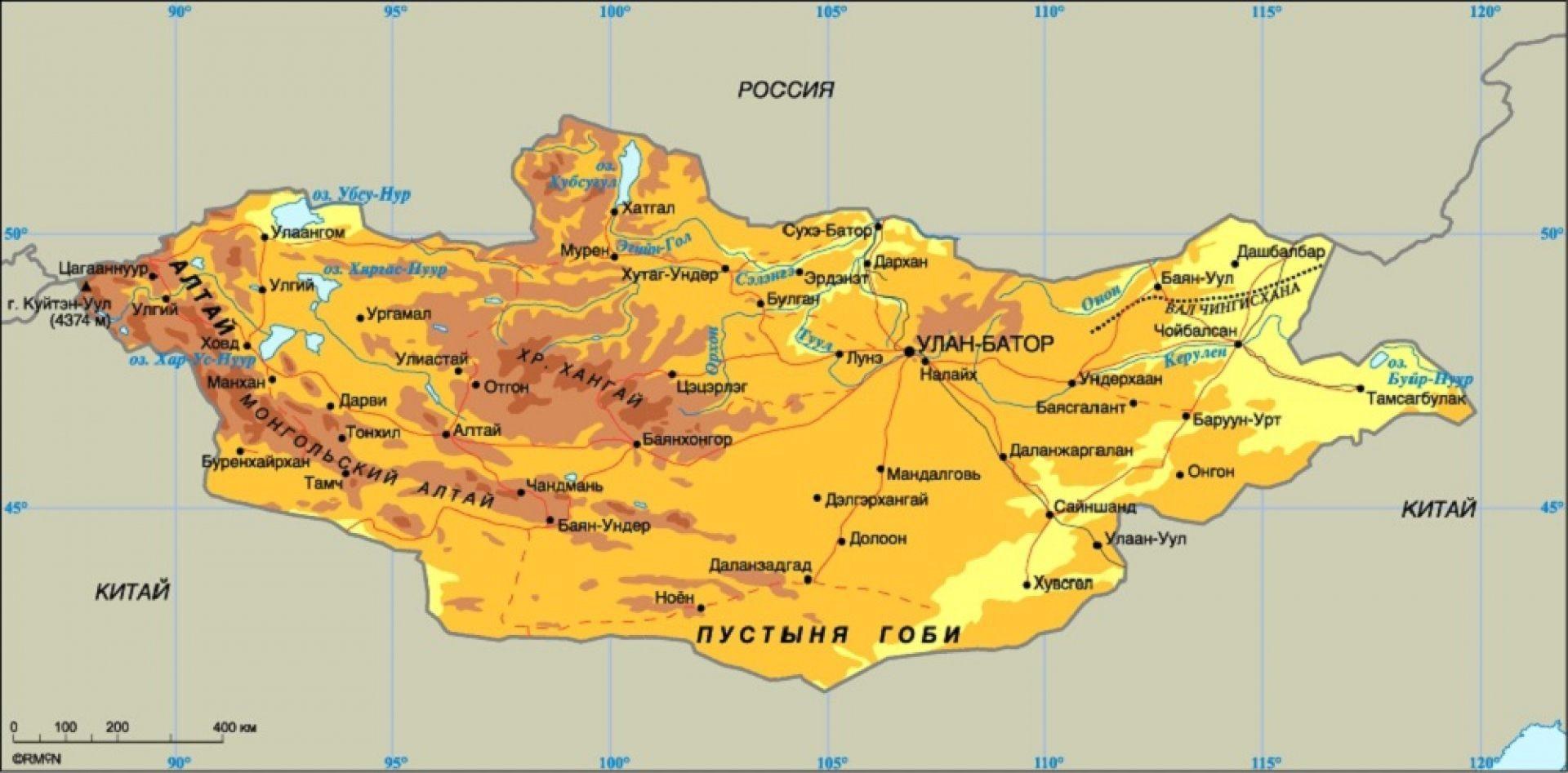 Физическая карта Монголии