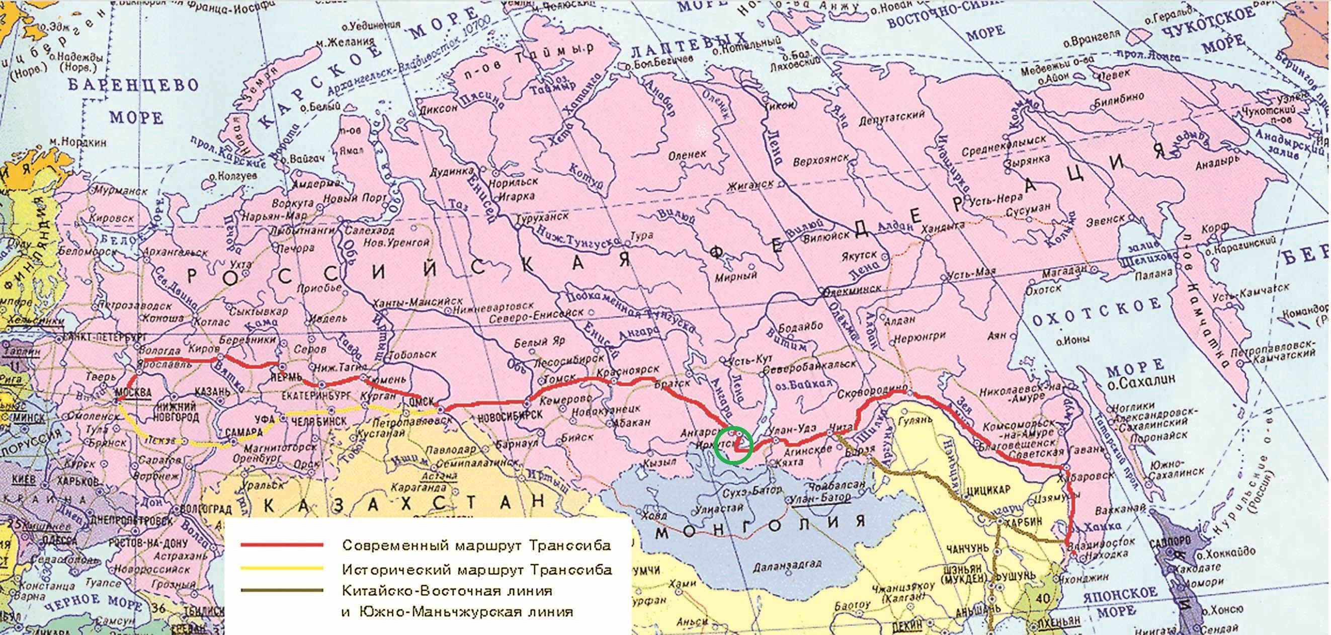 Транссибирская Железнодорожная магистраль на карте