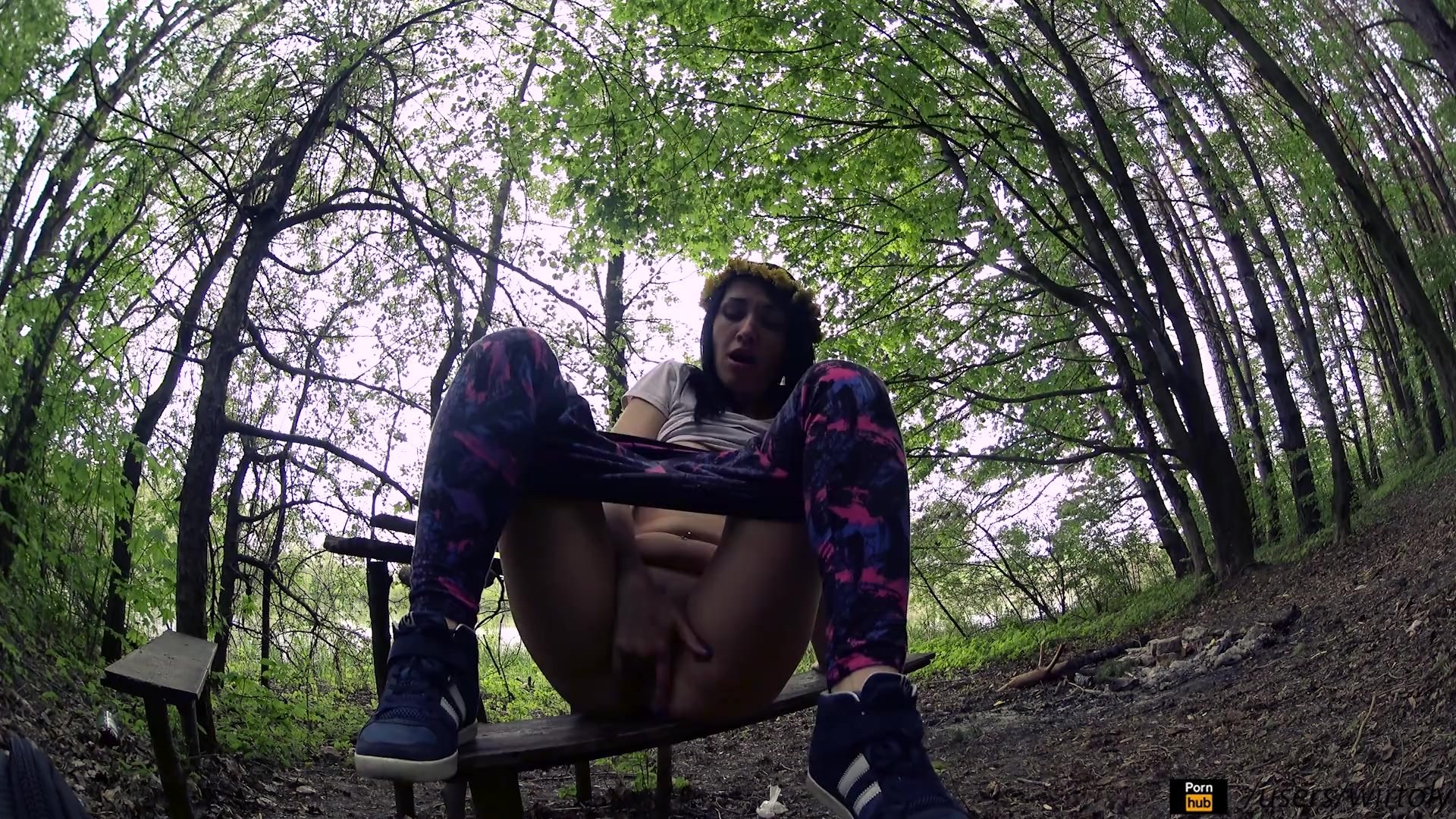Женская мастурбация в лесу