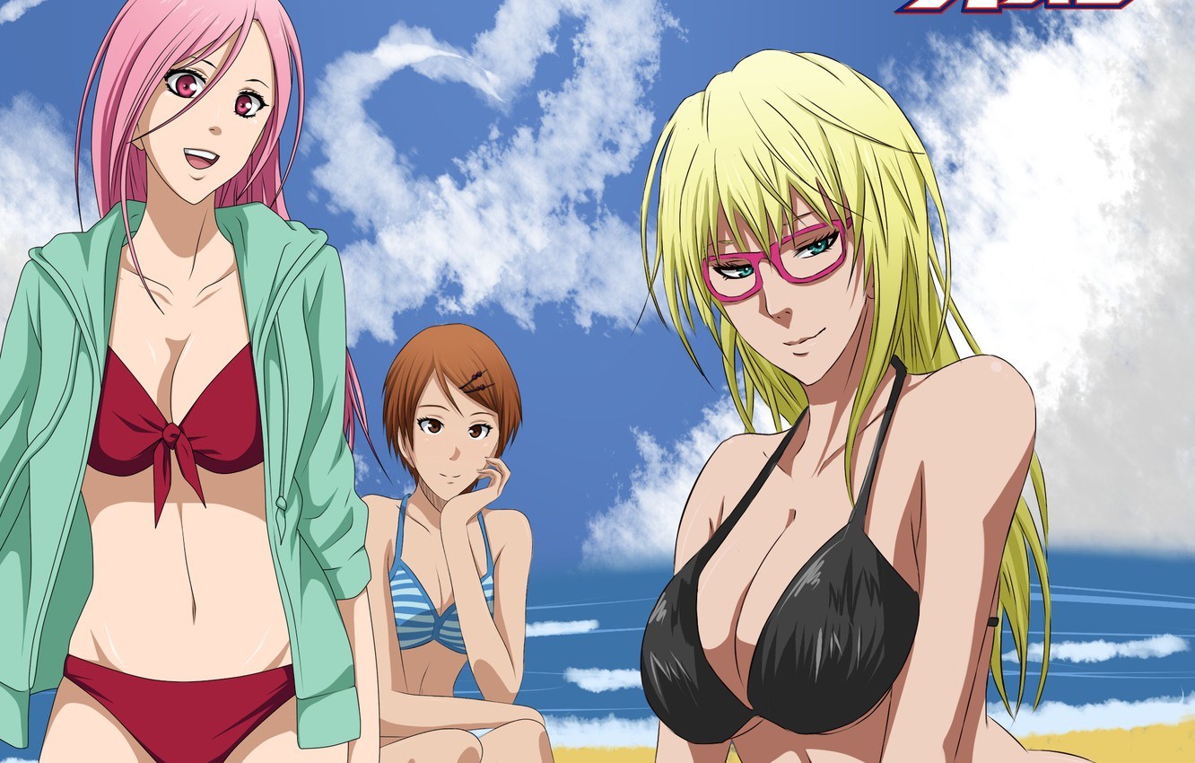 Баскетбол Куроко Момои Сацуки и айда Рико в купальнике