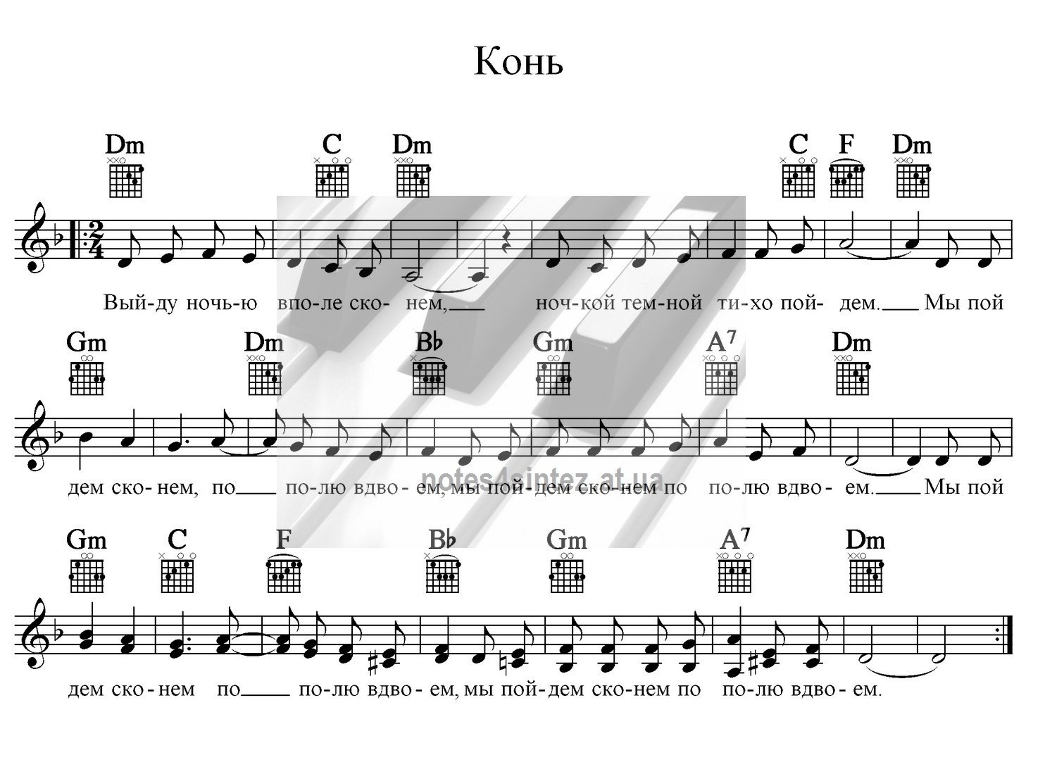 Конь Любэ Ноты для баяна