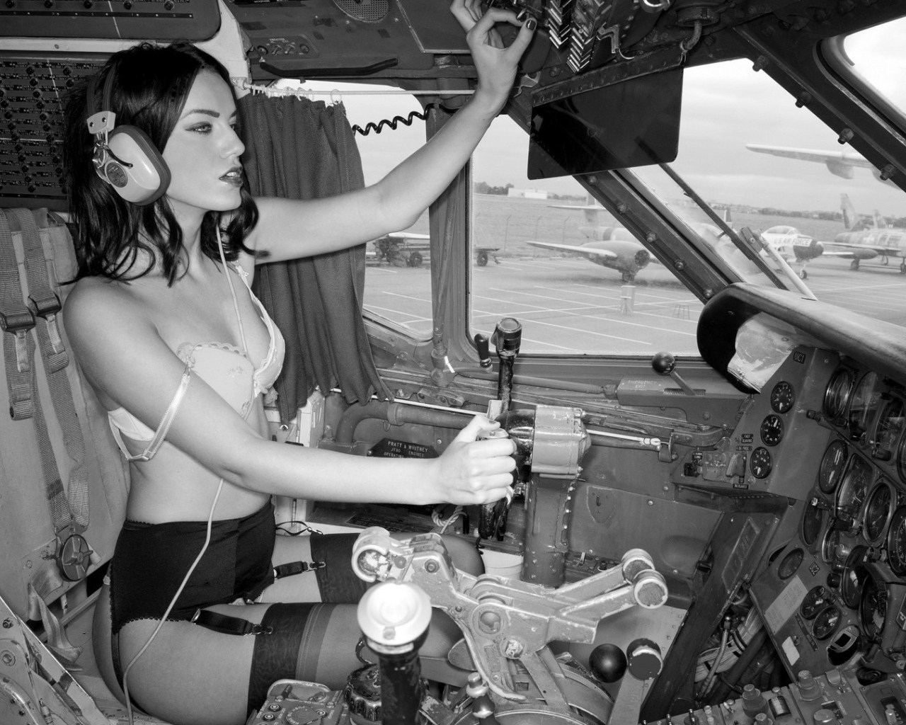 Голая за штурвалом самолёта