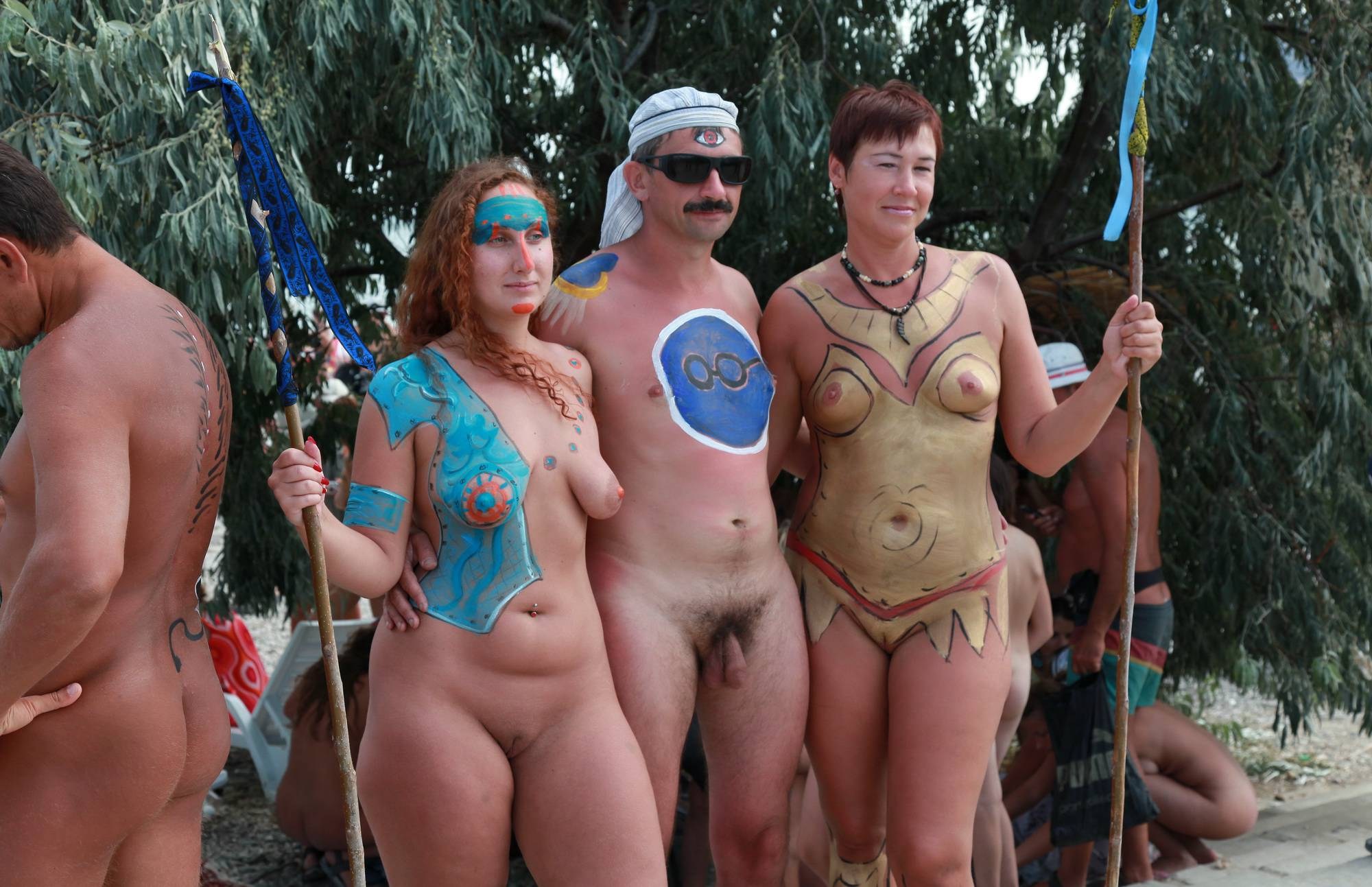 Семейный нудистский боди арт