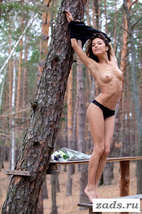 Можно не просто подышать свежим воздухом в лесу, но и ещё эротично показать обнажённую задницу. Именно этим сейчас и занимается милая брюнетка, которая снимает с себя джинсы и начинает подставлять раздетые ягодицы в тоненьких стрингах. Чтобы её было лучше видно, соска даже залезла на самодельный сколоченный стол и принялась там принимать разнообразные позы, в которых выгоднее всего выглядит. Голая проказница сделала всё так круто, чтобы порадовать пацанов на славу.